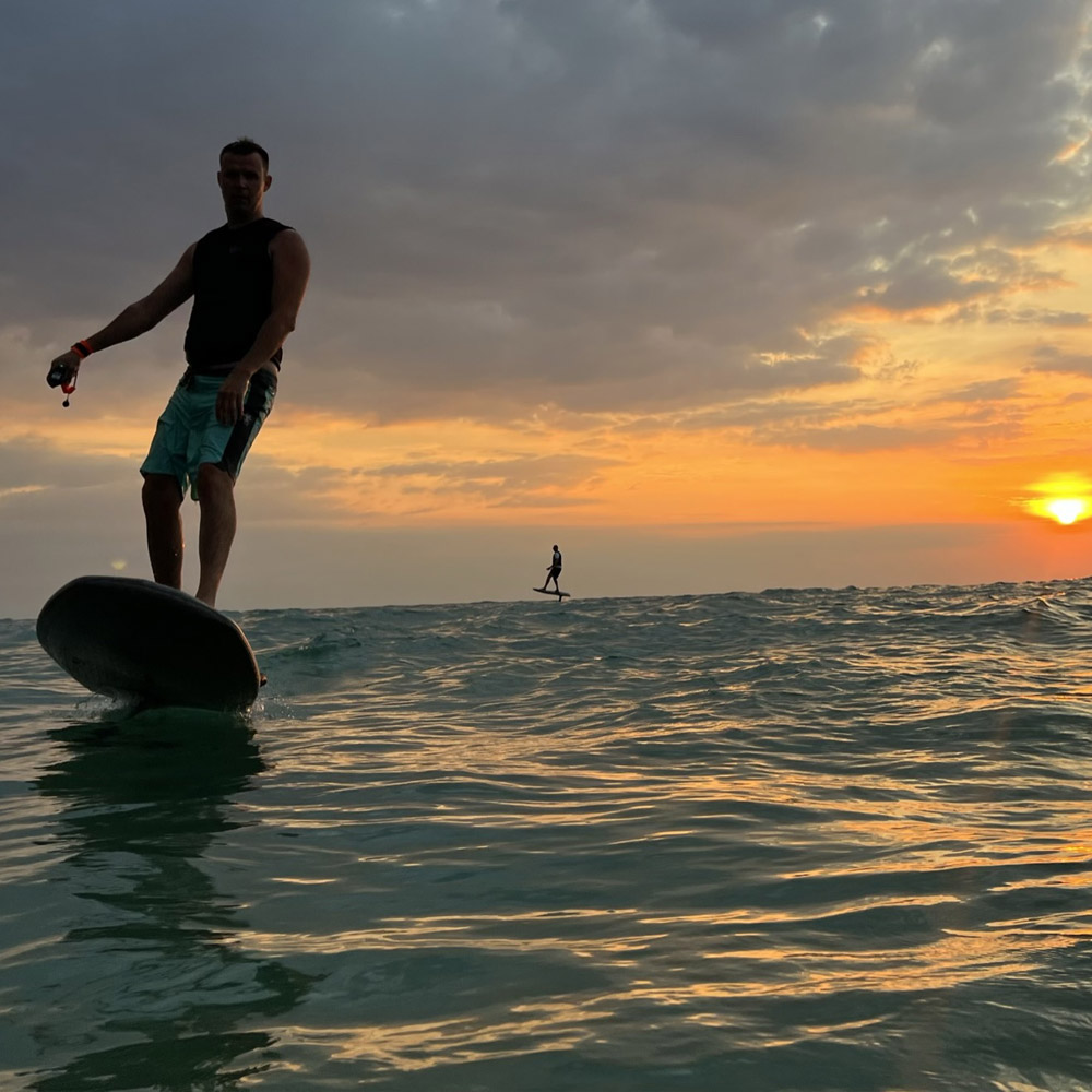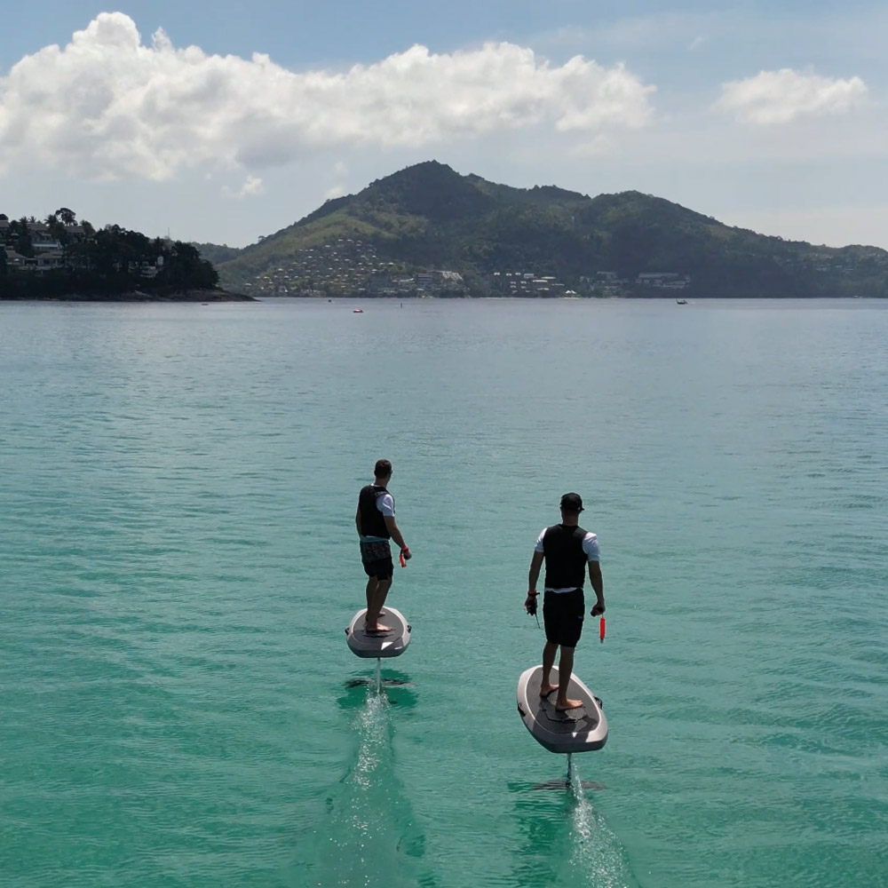 Perfect onboard entertainment: easy start, compact size, silent ride. Includes life jacket, helmet, charger.